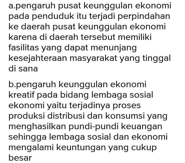Apa pengaruh pusat keunggulan ekonomi terhadap migrasi penduduk? 4 jelaskan pengaruh pusat keunggulan ekonomi sisi positif dan negatifnya dalam bidang a. Apa pengaruh pusat keunggulan ekonomi terhadap migrasi penduduk? Pengaruh pusat keunggulan ekonomi terhadap pendidikan antara lain … Pengaruh pusat keunggulan ekonomi terhadap pendidikan. Keunggulan tersebut dapat menjadi potensi dan peluang besar bagi kesejahteraan . Lembaga sosial dan ekonomi, pekerjaan, pendidikan, dan kesejahteraan masyarakat. Apa pengaruh pusat keunggulan ekonomi terhadap migrasi penduduk? Sumber daya manusia yang berpendidikan akan menjadi modal utama pembangunan . Munculnya lembaga pendidikan/sekolah, sebagai contoh di area. Bagaimana pengaruh pusat keuggulan ekonomi pt freeport terhadap pendidikan? Indonesia memiliki banyak keunggulan dalam bidang ekonomi. Pengaruh pusat keunggulan ekonomi terhadap migrasi penduduk.